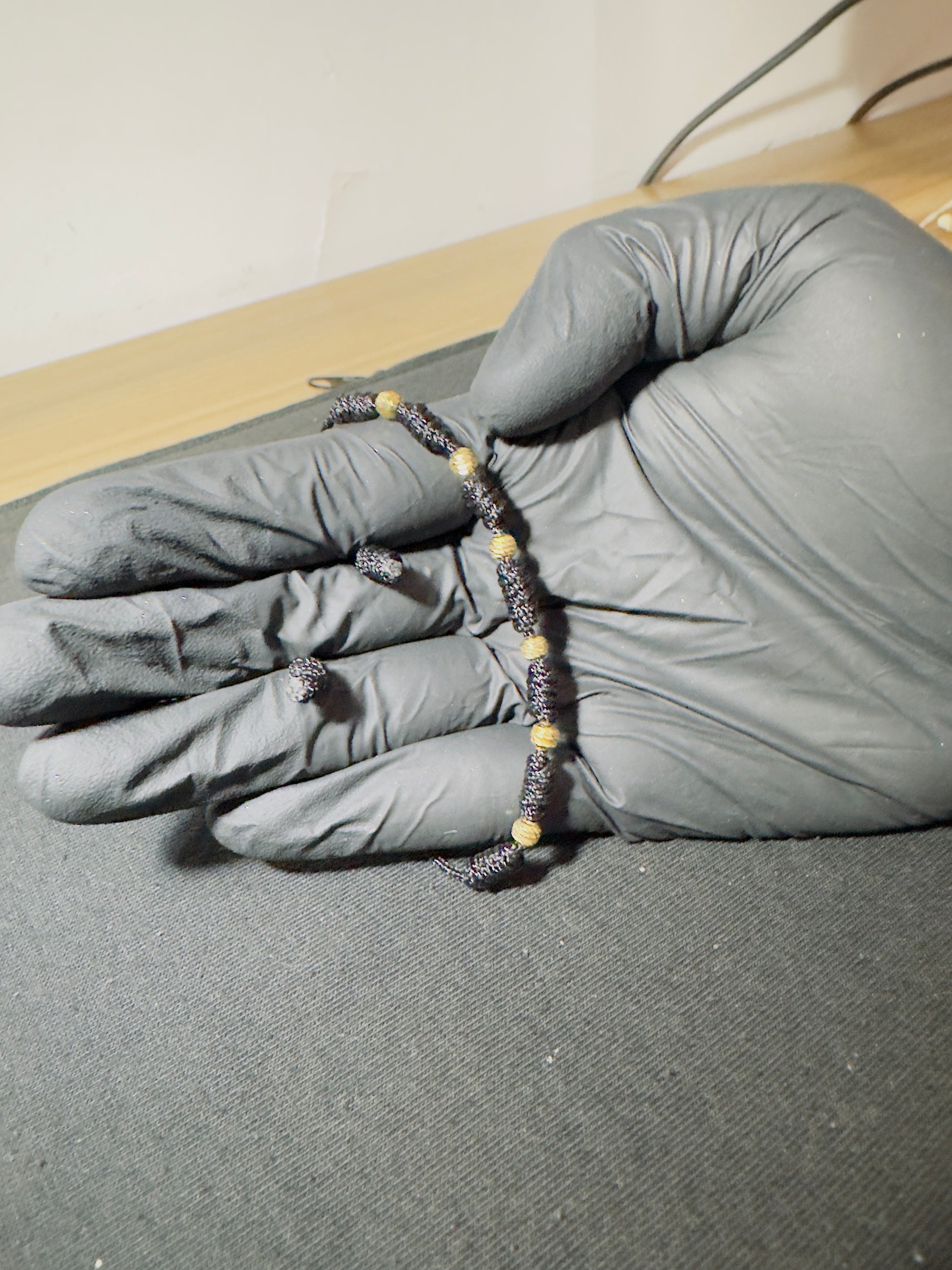 Se incorporan balines como elemento central y es confeccionada de forma manual, con pulido cuidadoso para lograr un acabado limpio y uniforme.